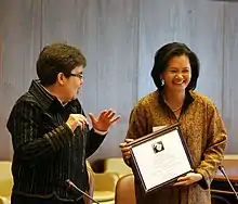 Mu Sochua receives the Eleanor Roosevelt Award for Human Rights in 2009 at The George Washington University.
