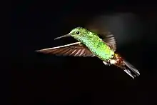 The International Ornithological Committee (IOC) recognizes these 366 hummingbird species in family Trochilidae, and distributes them among 112 genera.[1] One extinct species known only from a 19th century specimen, Brace's emerald, is included. This list is presented in IOC taxonomic sequence and is also sortable alphabetically by common name and binomial name.