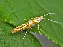 - Stigmella malella (Stainton, 1854) (banded apple pigmy)