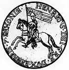 The oldest surviving heraldic seals are the equestrian seals (German: Reitersiegel) used by high nobility in the second half of the 12th century. Among the oldest examples from the Holy Roman Empire, of what would develop into German heraldry, is the lion (or "leopard") of the Staufer coat of arms, first used before 1146 by Henry "the Lion", and in 1181 on the seal of Frederick VI of Swabia.[7] Similar seals are known from England, one of the oldest being the equestrian seal of King Richard Lionheart of the House of Plantagenet, dated 1189, showing a heraldic lion design on the king's shield. His second seal, dated 1198, shows the three lions design which would subsequently become the royal coat of arms of England.