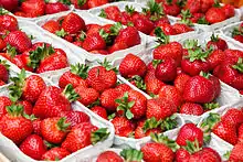 This is a list of strawberry dishes, foods and beverages, which use strawberry as a primary ingredient. Several desserts use strawberries as a main ingredient, and strawberries are also used as a topping on some foods, such as French toast, waffles and pastries.