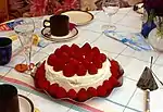 Strawberry cheesecake | Cheesecake with strawberries that may be used as a topping and/or incorporated into the cake itself | |