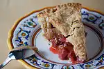 Strawberry rhubarb pie | A tart and sweet[6] pie made with a strawberry and rhubarb filling. | |