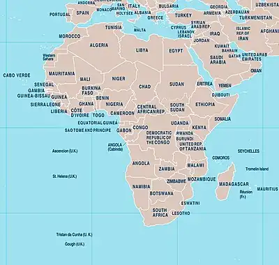 - Western Sahara (disputed territory, partially controlled by Sahrawi Arab Democratic Republic)[7]