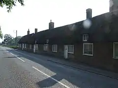 A row of four Grade II listed 18th century rough cast, thatched cottages stand by the roadside. One is detached, the remainder are terraced.[4] At the northern end of the hamlet are four pairs of late 19th century semi-detached estate cottages having yellow brickwork with red brick dressings.[5]
