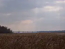 Looking south over Little Lake Butte des Morts at the Roland Kampo Memorial Bridge for Highway 441