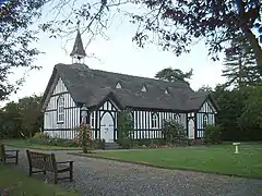 There is a small church in the village, built in 1903 - "All Saints". It is a Church of England church and is one of three in the ecclesiastical parish of Church Stretton, along with the churches in All Stretton and Church Stretton.[7] The parish is part of the Diocese of Hereford. It is a very unusual church (for England in the present era) for its construction is timber with a thatched roof replacing the original corrugated iron roof.[8]