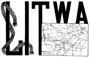 It was published monthly in 1908, every two weeks in 1909–1912, and weekly in 1913–1914. The newspaper was mainly directed to the Polish-speaking Lithuanian nobles who maintained the dual Polish-Lithuanian identity and sought to involve them in the Lithuanian National Revival.[1] Lithuanian activists believed that the nobles were Lithuanians who "forgot" their Lithuanian roots and heritage and needed to be "returned" to the Lithuanian nation.[2] The newspaper supported the concept of the ethnographic Lithuania and fiercely criticized ideas about recreating the old Polish–Lithuanian Commonwealth by the Polish National Democracy.[3] More practically, Litwa also wrote on how to address the Polonization of Vilnius and Vilna Governorate. This later led to the establishment of a separate Polish-language magazine Lud targeting the Polish-speaking peasants living in the area. The newspaper did not become a catalyst for polemic discussions and did not generate any new ideas. It mainly translated and reflected ideas propagated by the Lithuanian Christian Democrats and Nationalist Democrats.[4] It failed to attract and retain interest of Polish groups, the Krajowcy, or activists of the Belarusian National Revival. The newspaper was discontinued due to low readership and financial difficulties in May 1914.