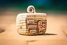 "Live, Laugh, Love" and variants on the phrase have appeared on framed posters, wall decals, ornaments, cushions, mugs, bed linen, jewellery and even on coffins.[3][4] The Live Love Laugh Foundation, a mental health organization in India founded by Deepika Padukone, takes its name from the phrase.