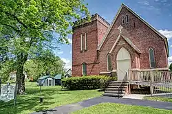 Livingston Memorial Church and Burial Ground is a historic Dutch Reformed church at CR 10 & Wire Road in Linlithgo, Columbia County, New York. It was built in 1870 on the site of the original 1721 church and above the Livingston family burial crypt established in 1727. It is on land provided by Robert Livingston the Elder (1654-1728) in his will. It is a one-story, rectangular brick structure, 48 feet long and 24 feet wide. It features a square tower added to the building in 1890 and Gothic arched windows. The burial ground contains 39 stones, with the earliest dating to 1772-1781; burials ceased in 1890.[2]