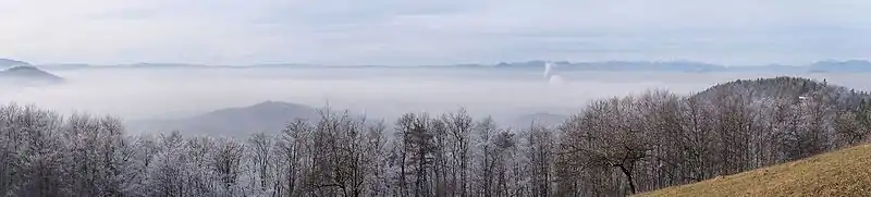 Ljubljana Basin in the mist (view from Krim in the south towards the north)