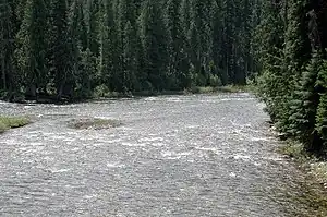The Lochsa River is in the northwestern United States, in the mountains of north central Idaho. It is one of two primary tributaries (with the Selway to the south) of the Middle Fork of the Clearwater River in the Clearwater National Forest. Lochsa is a Nez Perce word meaning rough water.[6][7] The Salish name is Ep Smɫí, "It Has Salmon."[8]