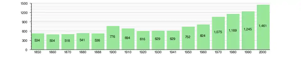 As of 2000, there were 549 private households in the municipality, and an average of 2.6 persons per household.[7] There were 117 households that consist of only one person and 40 households with five or more people. Out of a total of 551 households that answered this question, 21.2% were households made up of just one person and 10 were adults who lived with their parents. Of the rest of the households, there are 138 married couples without children, 245 married couples with children There were 27 single parents with a child or children. There were 12 households that were made up unrelated people and 2 households that were made some sort of institution or another collective housing.[8]