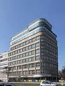 From 1928 to 1930, it had a new administrative headquarters building designed by the architect Albert Biebendt on a 1,445 m2 plot of land at the corner of Schöneberger Ufer 47 and Potsdamer Strasse 58 (Tiergarten district, Mitte borough) in the style of the early New Objectivity, which was one of the very first high-rise buildings in Berlin.[6]