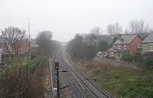 Lofthouse and Outwood railway station served the Outwood area of Wakefield, West Yorkshire, England. It was opened by the Methley Joint Railway in 1869, 1876[2] and closed in 1957.[3] Here the line from Lofthouse Junction on the line between Cutsyke and Methley of the Lancashire and Yorkshire Railway joined the GNR line between Leeds and Wakefield in a triangular junction, of which the station formed the southern corner.[4] It was situated south of Outwood railway station which was opened in 1988 and south of the bridge of Lingwell Gate Lane.