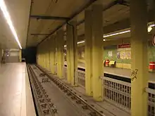 The station was opened in 1974 and consists of two side platforms with two rail tracks.