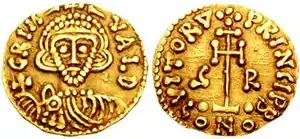 With Grimoald alongside the production of gold coins, silver coinage began. Deniers with similar characteristics to those issued in the same period by the papacy and the Frankish kingdom were minted.[33][34]