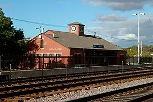 Lombard is a station on Metra's Union Pacific West Line, located in Lombard, Illinois. The station is located at 9 South Main Street. Lombard is located 19.9 miles (32.0 km) away from Ogilvie Transportation Center, the eastern terminus of the West Line.[2] In Metra's zone-based fare system, Lombard is in zone D. As of 2018, Lombard is the 21st busiest of the 236 non-downtown stations in the Metra system, with an average of 1,502 weekday boardings.[1] Unless otherwise announced, inbound trains use the north platform and outbound trains use the south platform. The middle track does not have platform access.