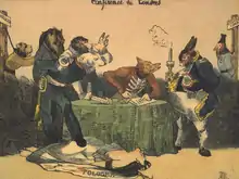 Fishman says that the London Conference was "an extraordinarily successful conference" because it "provided the institutional framework through which the leading powers of the time safeguarded the peace of Europe".[2] G. M. Trevelyan from a British standpoint called it "one of the most beneficent and difficult feats ever accomplished by our diplomacy";[3] while the French too saw their goal of an independent Belgium, which was peacefully accepted by the other Great Powers, as being achieved.[4]