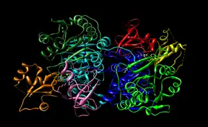 - ↑ May JJ, Kessler N, Marahiel MA, Stubbs MT (September 2002). "Crystal structure of DhbE, an archetype for aryl acid activating domains of modular nonribosomal peptide synthetases". Proc. Natl. Acad. Sci. U.S.A. 99 (19): 12120–5. Bibcode:2002PNAS...9912120M. doi:10.1073/pnas.182156699. PMC 129408. PMID 12221282.