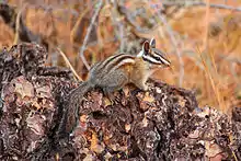 The long-eared chipmunk (Neotamias quadrimaculatus), also called the Sacramento chipmunk or the four-banded chipmunk, is a species of rodent in the squirrel family, Sciuridae. It is endemic to the central and northern Sierra Nevada of California and Nevada in the United States.[1] Long-eared chipmunks have the longest ears of all species of chipmunks.[2]