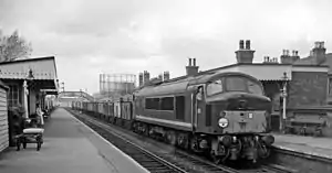 ![]() Diesel-hauled empties passing the former Long Eaton Station in 1962 | |