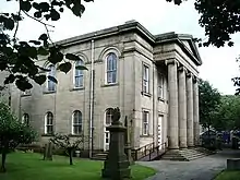 Longholme Methodist Church is Methodist church in Rawtenstall, Lancashire. 53°42′04″N 2°17′10″W / 53.70103°N 2.28619°W The current building is the third used for methodist worship in Rawtenstall. It cost £7,000 and was opened on 18 March 1842. It provided 1300 seats for worshippers.[1] The building was designed by John Simpson of Leeds.[2] It was financed by the brothers Thomas, David and Peter Whitehead,[2] local businessmen who are buried in a shared grave in the churchyard.[3]