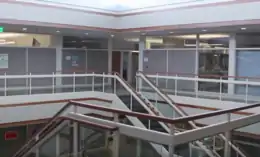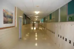 The main two-story academic wing housing most of the school's classrooms extends out to the west from the core lobby area. North of the core lobby is the new gymnasium and athletic and physical education spaces as well as the renovated 1971 wing which was completed during the summer of 2013. The reused wing was nearly completely gutted on the inside and received a completely new brick facade to match the new 2013 building with only the swimming pool and its locker rooms remaining laid out as they were originally built.[5]