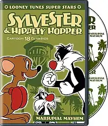 Looney Tunes Super Stars' Sylvester & Hippety Hopper: Marsupial Mayhem is a DVD featuring 18 newly remastered cartoons. It is the final release in the Super Star series, due to poor sales of Looney Tunes Platinum Collection: Volume 2 and the depletion of the remastering budget for new-to-DVD Looney Tunes shorts.[19] This release features all 18 of Sylvester's pairings with Hippety Hopper and/or his son, Sylvester, Jr., The DVD was released on April 23, 2013.[19]