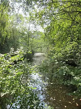 A number of small streams flow northward through the wood, converging and then eventually meeting the River Chew to the north.