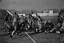 From the beginning, the PCPFL became a showcase for the Bulldogs and Schissler’s (newly renamed) Hollywood Bears as the league did something that the NFL did not do at the time: employ African American players. While the Bears featured the talents of Kenny Washington, Woody Strode, and Kink Richards, the Bulldogs relied upon local talent as well (including, briefly, in 1941, a UCLA Bruin who lettered in four sports: Jackie Robinson). The availability of Washington to the Bears determined the league championship in 1940 and 1941 as he was injured for a Bruins-Bulldogs game that resulted in Los Angeles winning the championship with a 7–2–1 record; a healthy Washington powered Hollywood’s undefeated romp through the schedule the following year (including three defeats of the Bulldogs as LA finished in second place with a 4–4 record). It did not matter at the time that the league would end the 1941 season two weeks early because of the attack on Pearl Harbor and the U. S. military’s ongoing fear of a possible Japanese attack on the American West Coast.[3]