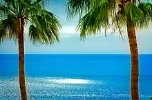 The town has a marina surrounded by concrete walls to dampen the effect of the rough seas around the area. A small black sand beach lies between the rocks and the marina. The marina has a boulevard with many restaurants. Near the harbour is a lido.