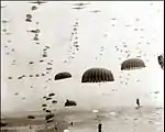 On June 5–6, 1944, the paratroopers of the 82nd's three parachute infantry regiments and reinforced glider infantry regiment, who were stationed in England, boarded hundreds of transport planes and gliders and began the largest airborne assault in history. They were among the first soldiers to fight in Normandy, France.[4]
