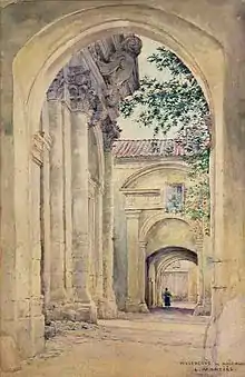 But with photo-etching and other new publication processes, etchers were less and less able to make a good living from their skills. Louis Monziès move to Le Mans and became a painting teacher and a painting restoration specialist. He began to paint landscapes and urban environments in Normandy and in other towns like Venise or Avignon. He sold a lot of watercolors and oil paintings before the First World War. A few of these paintings were sent to the US by American officers housed by the painter at the end of the war.