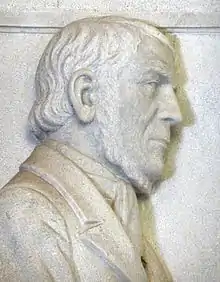 Several memorials trace his route, the first at Winburg where one column of the Voortrekker monument symbolizes Tregardt's party.[22] Near Zebediela a route marker is present beside the R519 road just north of the Strydpoort mountains,[22][23] which in itself recalls Tregardt's disagreement with Van Rensburg. In the town of Louis Trichardt a memorial commemorates the school they built,[24] and a bust of Tregardt is displayed in the municipal library.[22] In 1937, the trek's centenary, a bronze plaque was installed where they crossed the Drakensberg ridge.[8] A sundial beside Nelspruit's modern town hall is shaped like a wagon wheel in recognition of his journey.[25]