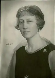 She graduated from the Technical School in Stockholm, following up with study trips to Italy and France. She began exhibiting ceramics and embroidery in 1916, and around the same time was tapped as a designer of patterns for the Rörstrand porcelain factory. She continued working for them until 1957, developing into a highly respected designer known for "an understated yet graceful modernism".[1] Patterns she developed include Vase (1923) and the National Service (ca. 1930).[2][3] National Service, later renamed Swedish Grace, features a wheat-ear motif and was exhibited at the Stockholm exhibition of 1930.[2][4] Swedish Grace is still in production and considered an iconic design.[2][5]