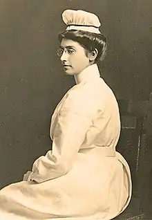 Dietrich was born in Ossining, New York, and was one of eleven children.[1] She graduated from St. John's Riverside Hospital in 1899 and went on to work as a private nurse in the state of New York.[1] Dietrich came to El Paso, Texas "on the same train with Buffalo Bill" in 1902.[2] Because of an epidemic of typhoid fever, Dietrich stayed on in El Paso, even though it wasn't her intended destination.[2] She worked at Providence Hospital where she was a director and superintendent.[1] At Providence, she started the first nurses' registry in Texas.[2] Dietrich established the El Paso Graduate Nurses Association in 1903 and served as the first president of the organization.[1] She resigned from Providence early in 1906.[3]