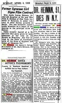 - ↑ "'Show Must Go On' In Spite of Grief". The San Bernardino County Sun. California, San Bernardino. United Press. September 15, 1935. p. 18. Retrieved October 11, 2017 – via Newspapers.com.