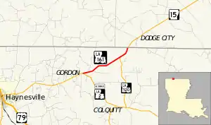 La 161—From a junction with La 2 "Alt" at or near Gordon northeast to the Arkansas state line.