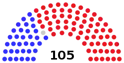 The Louisiana State Legislature (French: Législature de l'État de Louisiane)[1] is the state legislature of the U.S. state of Louisiana. It is a bicameral body, comprising the lower house, the Louisiana House of Representatives with 105 representatives, and the upper house, the Louisiana State Senate with 39 senators. Members of each house are elected from single-member districts of roughly equal populations.
