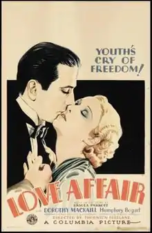 Love Affair is a 1932 American pre-Code romance film based on Ursula Parrott's short story of the same name.[1] The film is directed by Thornton Freeland and produced by Columbia Pictures. Love Affair follows an adventurous socialite (Dorothy Mackaill), who is in love with an aviation designer (Humphrey Bogart).[2][3] [N 1]