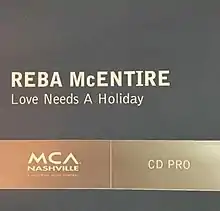 "Love Needs a Holiday" is a song originally recorded by American country artist Reba McEntire. The track was composed by Tony Haselden and Tim Mensy. It was released as a single in January 2006 via MCA Nashville and charted on the American country songs survey. It was the second and final single release from McEntire's 2005 album Reba #1's.