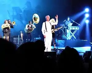 "I suggested brass as a prominent voice because, at the time David and I decided to write songs together, I had just done the Actor record with a lot of woodwind and a lot of strings on it. So I hadn't explored brass and I wanted to. Originally, we were going to do a night of music at a bookstore for charity. So I was thinking, Okay, it could be a small ensemble: just me and David and a couple of guitars and we'll call it a day. But then obviously it grew and grew and grew. Brass was a way to bridge what we do in some sort of neutral, middle ground. When we toured the album, just the sheer number of people onstage was exciting and overwhelming, and these people organised the stage movement in really fun and idiosyncratic ways and it made for such a lighthearted, beguiling show." – Annie Clark[8]