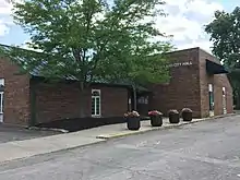 Loveland is located within three counties: Hamilton, Clermont and Warren. At least 61 Ohio cities cross county lines.[73] Loveland has withdrawn from Symmes, Miami, and Hamilton Townships to form a coextensive set of paper townships each named Loveland Township.[74][75] Historic Downtown Loveland and the central business district lie in a small valley on opposite sides of the Little Miami Scenic River, the boundary between Hamilton and Clermont counties, whereas most of Loveland's residential areas are located on the hills surrounding the valley on either side. Loveland City Hall is located in Clermont County, whereas most of the population resides in Hamilton County.[73]