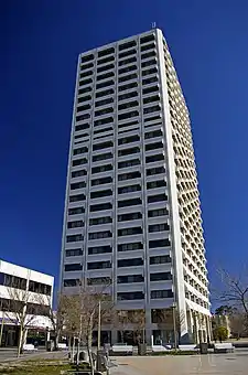 The Lovett Tower (formerly known as the MLC Building) is a 93-metre-tall building (305 ft) located in the Woden Town Centre, a commercial district in Canberra.