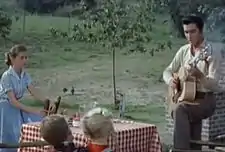 Shot in Technicolor and VistaVision, the production started on January 21, 1957, ending on March 8.[3] The film was shot at the Paramount studios, except the Jessup farm scenes, which were shot in the Hollywood Hills.[15] The film features appearances by Presley's guitarist Scotty Moore, bassist Bill Black, drummer D.J. Fontana, and The Jordanaires.[16] Presley's parents, Gladys and Vernon, who visited the set of the film, were included in the final scene of the film as part of the audience of the telecast.[10]