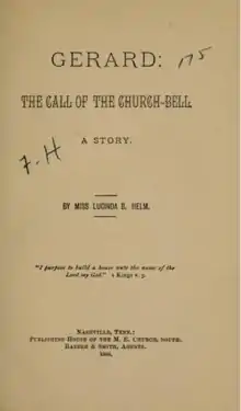 Lucinda Barbour Helm (pen name, Lucile; December 23, 1839 – November 15, 1897) was a 19th-century American author, editor, and women's religious activist from Kentucky. She wrote sketches, short stories, and religious leaflets. Helm published one volume, Gerard: The Call of the Church Bell. She was an active member of the Woman's Foreign Missionary Society of the Methodist Episcopal Church and of the International Christian Workers' Association.