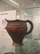 The term, coined in 1927 by Gero von Merhart, initially included only Melaun (also Mellaun), a village near Brixen. The pitcher of Laugen, found at Villanders and preserved at the South Tyrol Museum of Archaeology, is a typical example of this culture: it has a triangular nozzle, a decorative outer grooves, and a height of 18.3 cm ; next to the handle are two horn-shaped appendices.