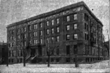 The building faced 130 feet (40 m) on North Capitol Street, and was 80 feet (24 m) deep on the M Street front.[2] Rust Hall was a five-story structure. It contained 115 rooms, of which 15 were for public use. The building accommodated 100 people and provided modern appliances. It was heated by hot water and lit by electricity generated by its own engines and dynamos. It was furnished with elevator and iron stairways. A telephone system connected the institution with the main office. Henrietta A. Bancroft served as chairman of the building committee. Charles W. Gallagher was treasurer and president of the National training school when the building opened.[3]