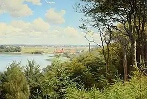 While there, he attended classes taught by P.C. Skovgaard at the Royal Danish Academy of Fine Arts, but was never formally admitted.[2] This was the occasion, however, for making the acquaintance of Godfred Christensen, who aroused his interest in landscape painting.
